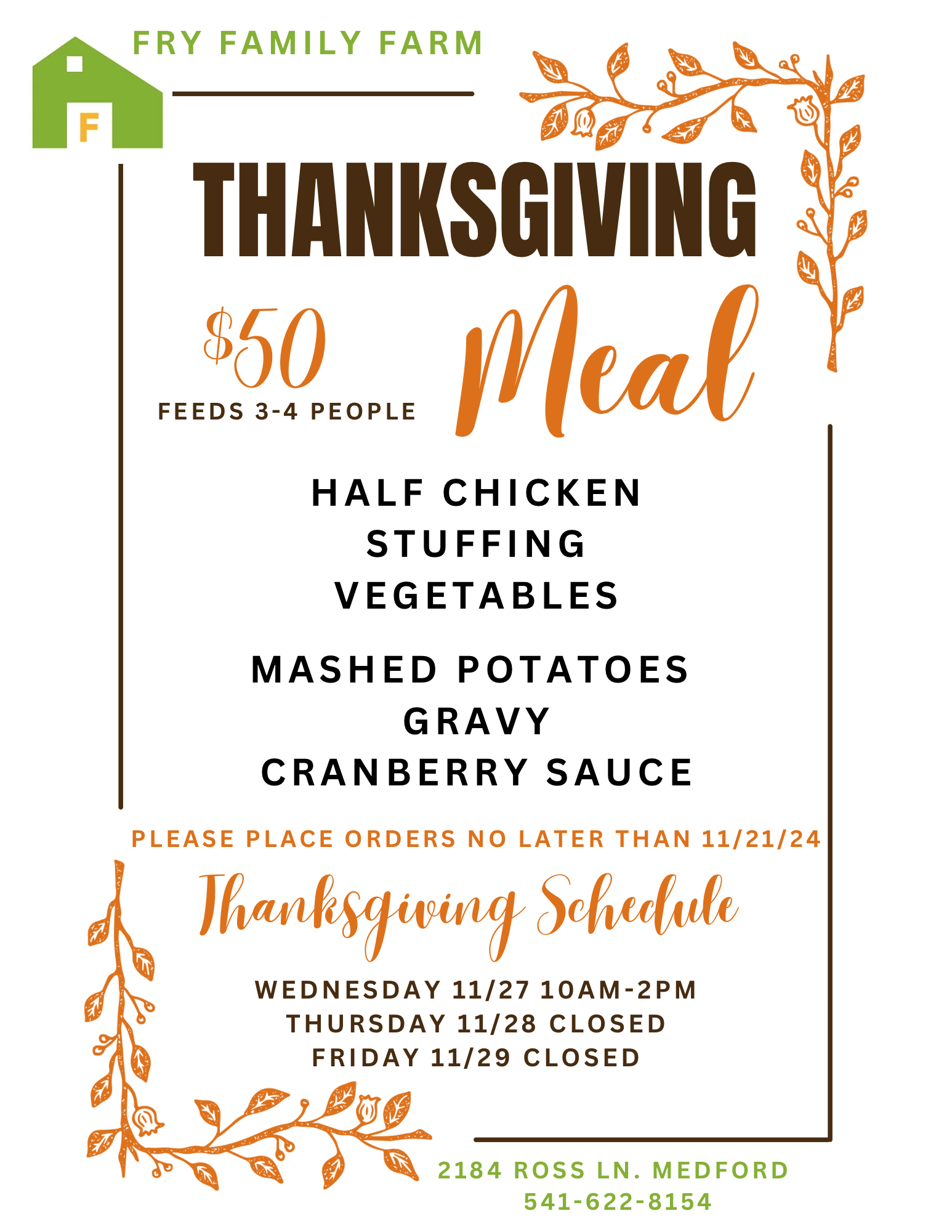 Half Chicken with Mashed Potatoes, Roasted Vegetables, Stuffing, Chicken Gravy, & Cranberry Sauce