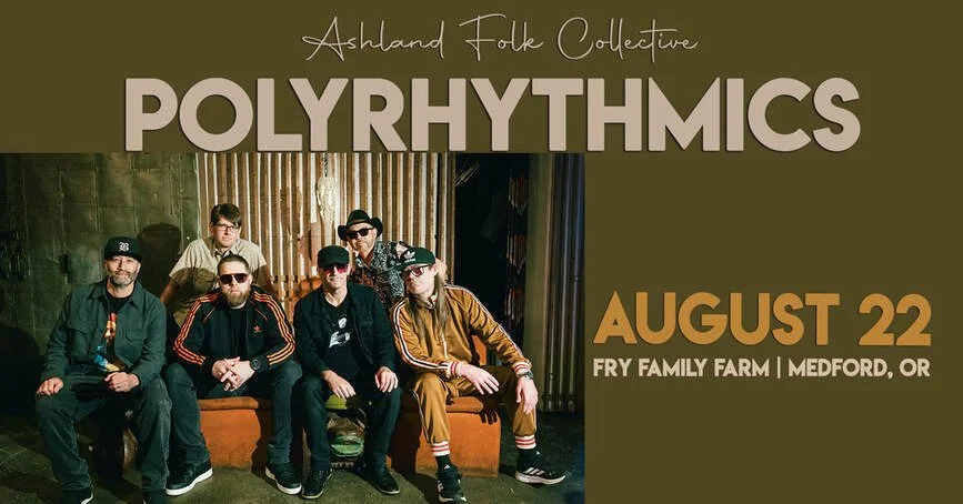 Concert: Polyrhythmics Saturday, August 22, 2026 6:00 PM 10:00 PM 18:00 22:00 Fry Family Farm 2184 Ross Lane Medford, OR, 97501 United States (map) Google Calendar ICS DOORS 6:00 | SHOW 7:00-10:00PM More Information & Tickets: Ashland Folk Collective